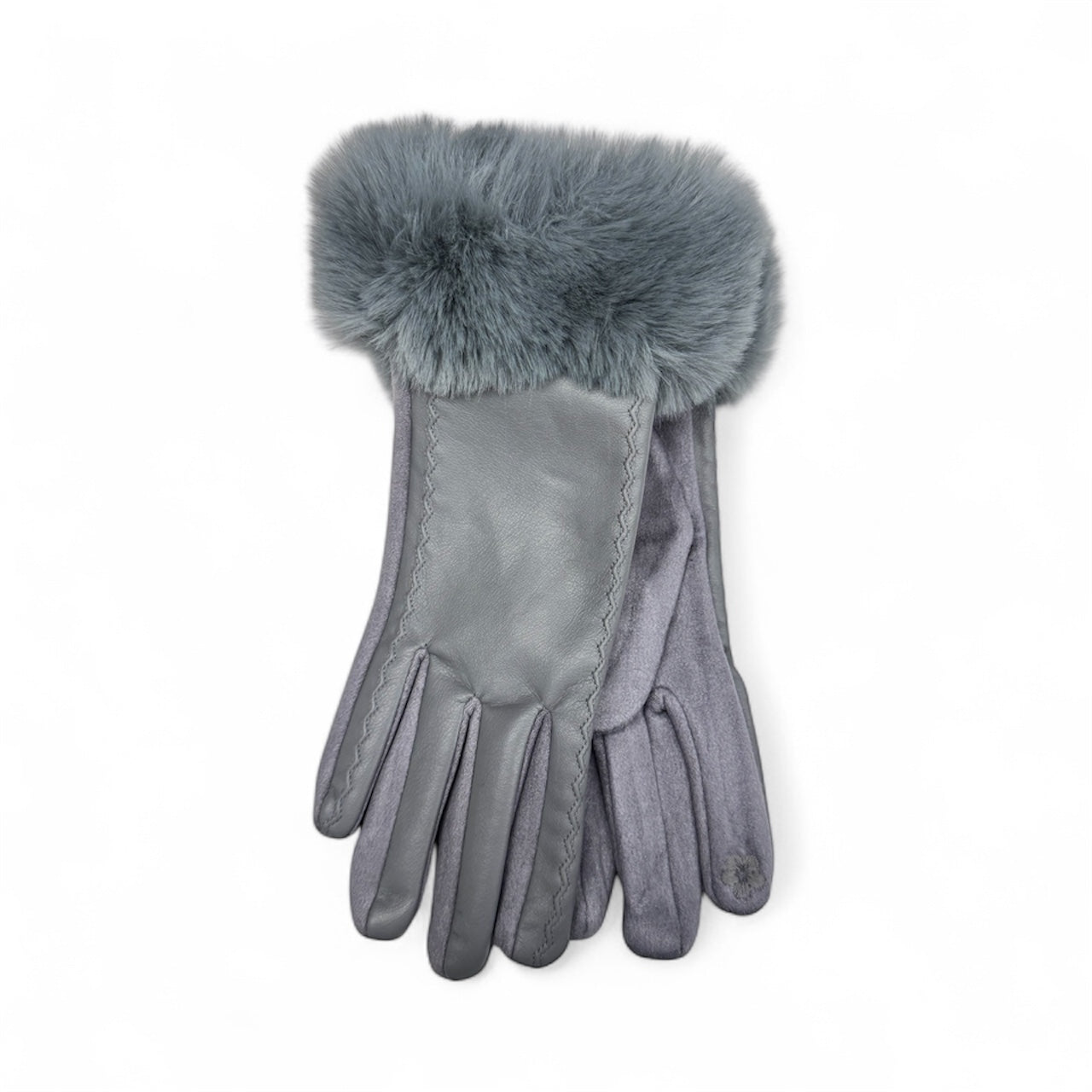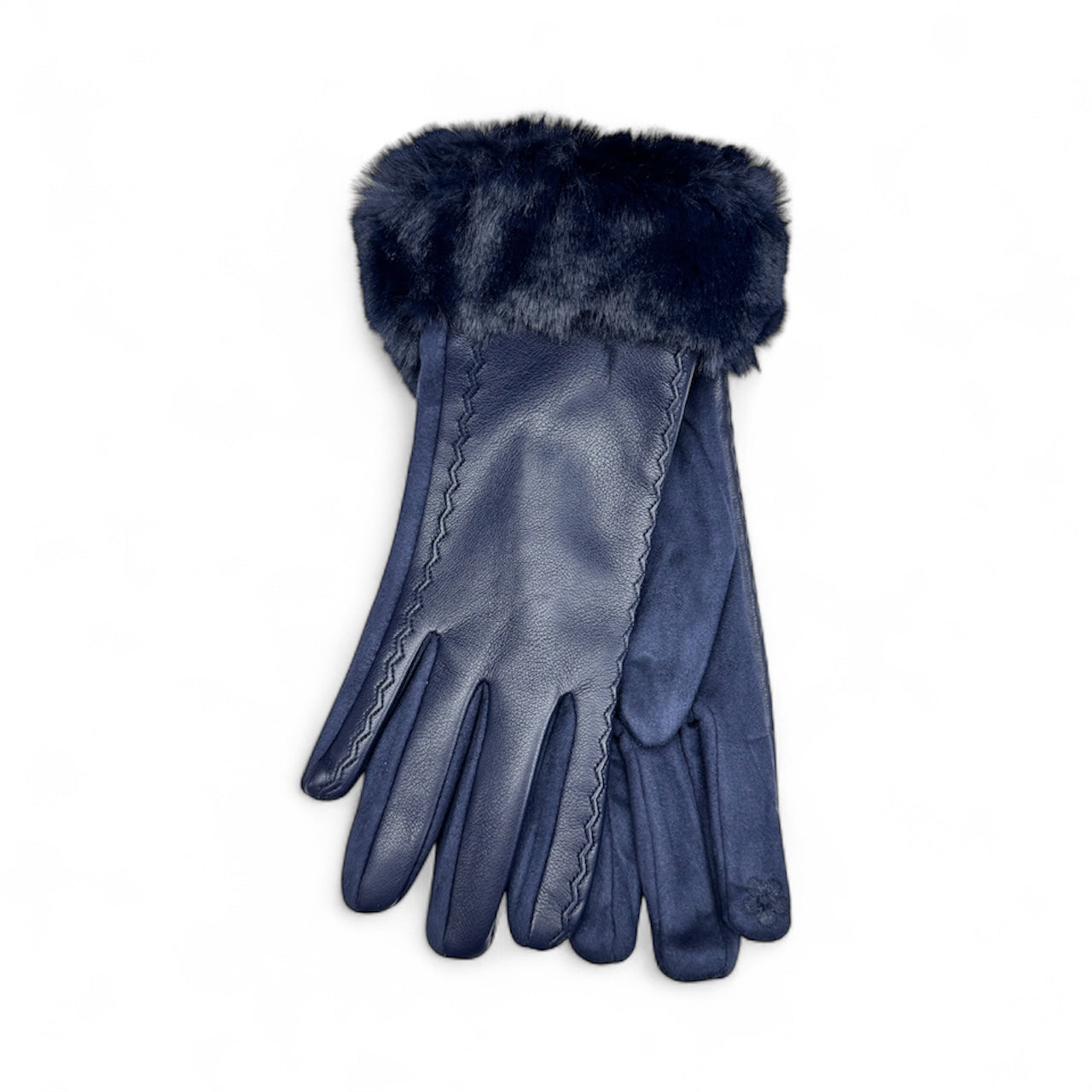 Stay warm and connected with our Faux Leather Fur Cuff Gloves. Made of high-quality faux leather, they feature a cozy fur cuff and touchscreen compatibility for texting. Say goodbye to cold hands and hello to stylish functionality!